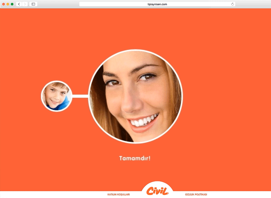 Anne-babalarını günlük hayatlarında sıkça kullandıkları "Bu çocuk kime benziyor" iç görüsünden yola çıktık. tipiaynisen.com mikro sitesiyle ebeveynlerin çocuklarının en çok kime benzediğini test edebildikleri makine yaptık